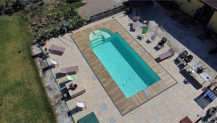CASTELFRANCO E. - MANZOLINO - Nella frazione di Manzolino, a pochi km dal centro del paese, ed immersa nel verde e nella pace della natura, proponiamo questa splendida casa con piscina, disposta su due livelli che offre ampi spazi per vivere in totale armonia con la natura. Al piano terra, troverai un ampio portico, cucina abitabile, sala da pranzo, soggiorno, bagno, lavanderia e cantina; al primo piano, tre camere da letto, bagno, piccolo ripostiglio e splendido terrazzo che offre comfort e tranquillità. La proprietà include anche un fabbricato aggiuntivo con garage, ampia cantina e un ufficio con servizio, ideale per chi desidera lavorare da casa e un terreno agricolo, attiguo, di 5.600 mq. circa, ideale per chi ama il giardinaggio o desidera coltivare i propri prodotti. La casa è mantenuta in discreto stato, è dotata di termocamino per il riscaldamento e la produzione dell'acqua calda. Sulla casa e sul fabbricato adiacente, sono presenti impianti fotovoltaici da 3 Kw circa l'uno. La proprietà si presta molto bene anche come B&B o similiare.